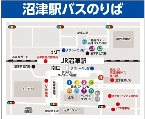 バスは循環ルート(沼津駅と沼津港)で運行しております。もしご希望の方面のバスがない場合でも、反対方向(沼津港方面)のバスにご乗車いただければ、少し遠回りにはなりますが、必ず沼津駅へ到着いたしますのでご安心ください。